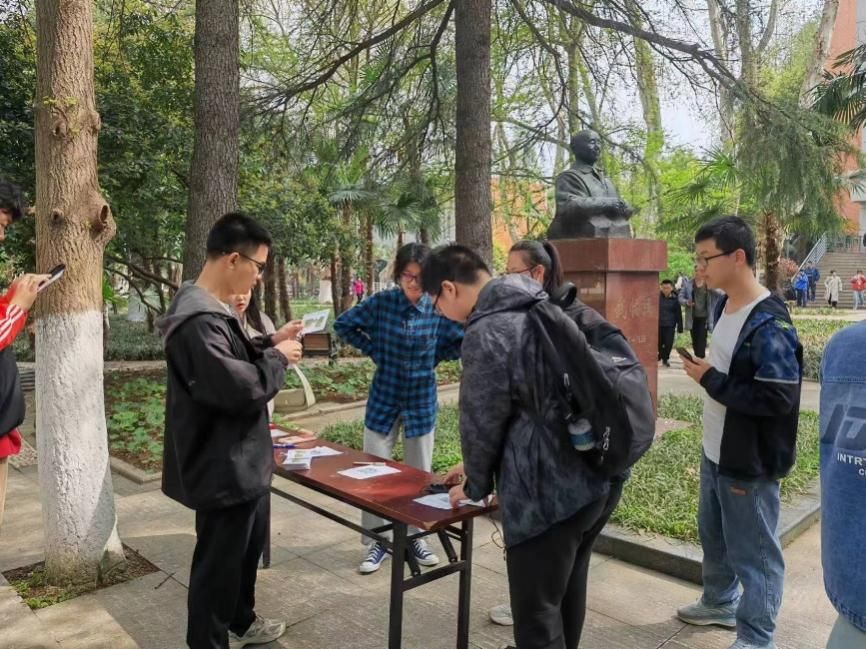 献花致敬后,同学们在老科学家塑像前进行知识问答打卡活动,在知识问答中,同学们对老科学家精神有了更多的了解和更深刻的感悟。