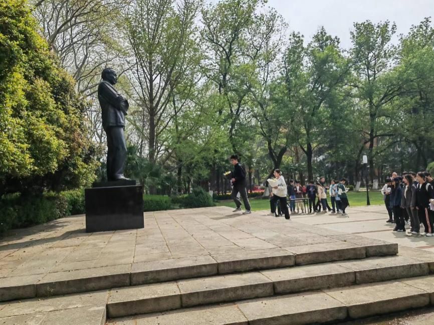 上午十点,同学们在郭沫若广场集合。团支部书记宗园同学诵读了老科学家事迹,介绍了团支部开展本次缅怀老科学家纪念活动的初衷。同学们在郭沫若老校长雕像前肃立默哀三分钟。