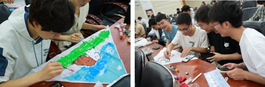 西区操场上支起了数个小摊位,每个摊位上都有不同的游戏环节,顺利完成游戏后可以得到一个印章,你写我猜、毛毛虫大作战、愤怒的小鸟、硬币博弈等游戏摊位前人头攒动。同学们在游戏中展现了出色的创造力和团队协作精神。弹弓投球、水中硬币、蒙眼合作、寻找沙包……同学们兴致勃勃地穿梭于摊位之间,留下一片片欢声笑语。