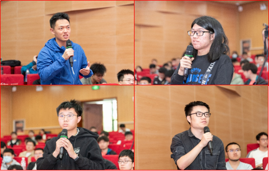互动交流环节,同学们积极举手申请提问,胡伟武校友热情地回应同学们的各种问题,亲切分享自己在母校就读期间的学习和生活经历,深入阐述自己对产业前沿技术热点及其趋势的看法,帮助同学们进一步了解前沿技术进展和发展趋势。