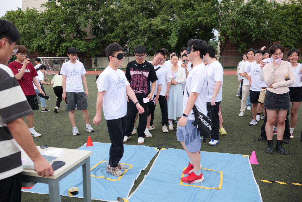 除了正式比赛区域以外,本次活动还专门设置了游戏区、手印区和旧物集市区供同学们参与游玩。游戏区包含“投壶挑战”、“蒙眼平衡挑战”、“套圈挑战”和“翩若惊鸿挑战”四个游戏,让同学们在激烈的拔河之外,也能一同享受游戏的快乐。手印区设置在本次活动的桁架背景墙周围,大家通过马克笔将自己的名字或留言写在背景墙上,或选择不同色彩的颜料涂在手掌,在背景墙上按下属于自己独一无二的印记。