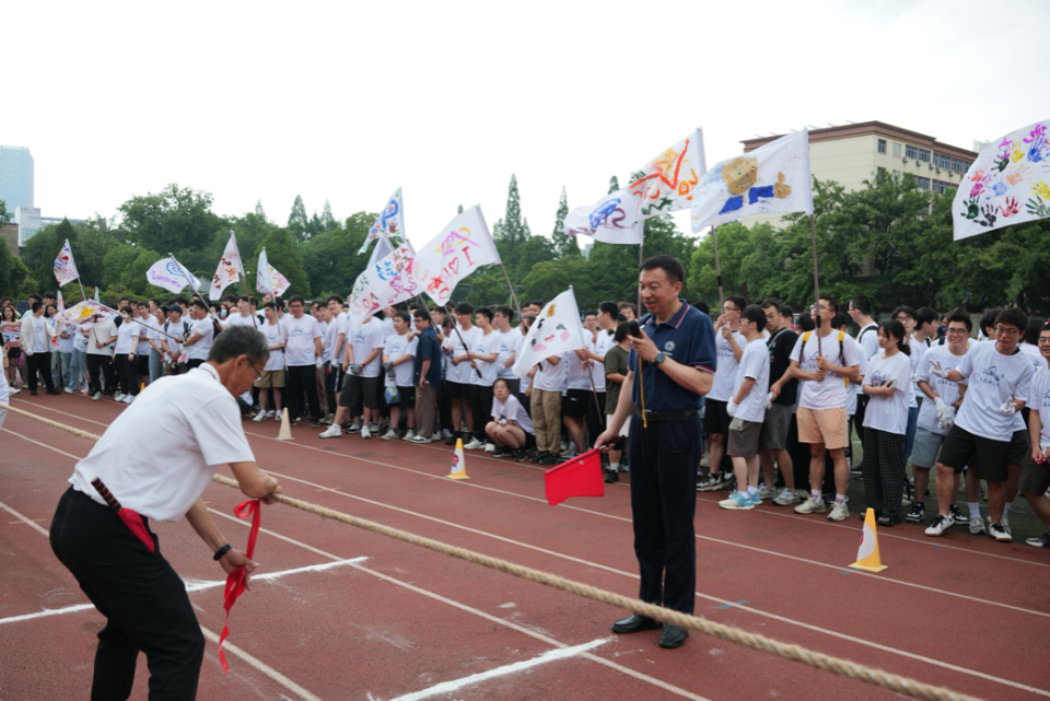 5月26日,中国科学技术大学“永远科大人”毕业纪念系列活动开幕式暨2024“See You”拔河比赛在东区运动场举行。校党委书记舒歌群出席活动并致辞,校团委书记千坤老师,校团委副书记林高华老师及各院系参赛师生参加活动。本次活动由校团委主办,校研究生会承办。