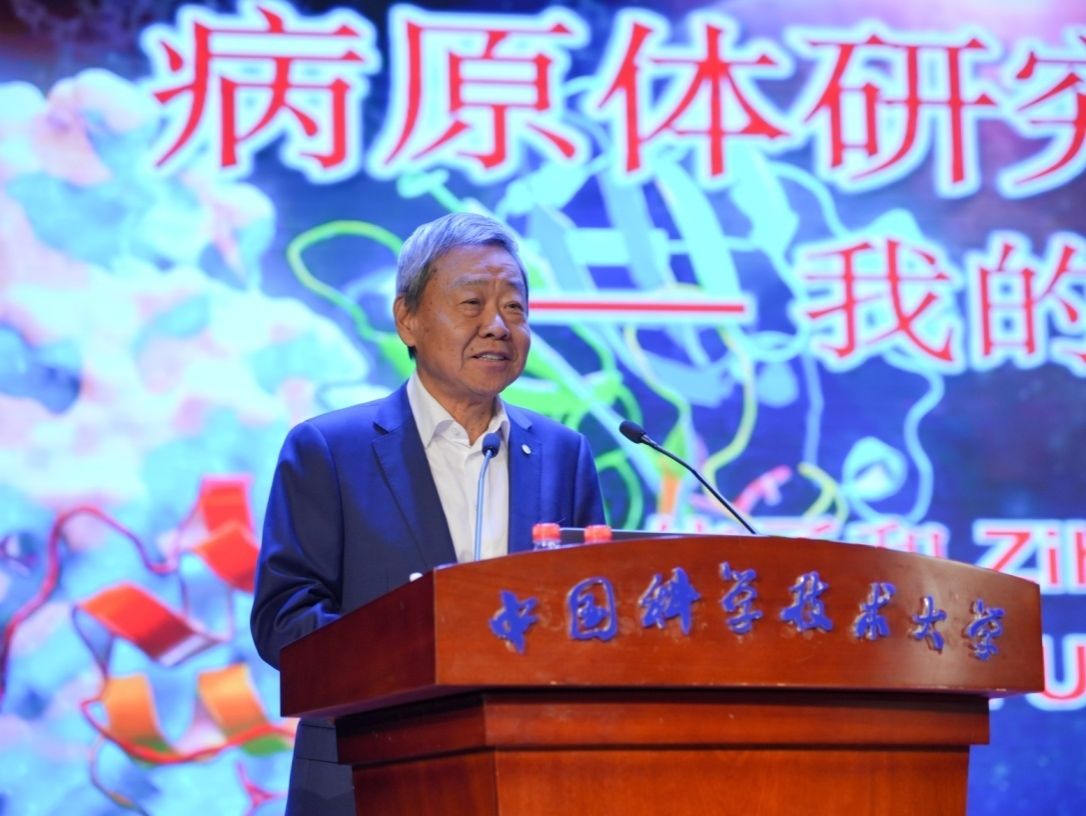 饶子和在报告中分享了其科研团队在病原体研究领域的最新成就,并分阶段概述了自己五十余年学习与科研的历程。他深情回顾了自1973年进入中国科大起,至毕业后在中国科学院生物物理研究所深造及工作的科研道路,期间取得了丰硕成果。饶子和感慨地表示:“国家与科大为我提供了最好的资源,铸就了我人生的第一个高峰。”