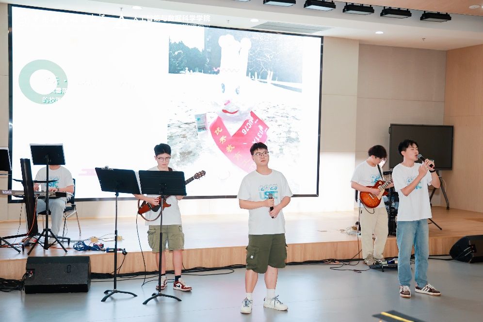 上午9时,熟悉的旋律在会场内悠然响起。中国科大吉他协会高新分社的GPtau乐队倾情演绎了《我想当风》《如愿》《像你这样的朋友》三首歌曲。动人的歌声与精心制作的背景视频相得益彰,一幅幅承载着青春记忆的校园画面在眼前徐徐展开,带领在场师生重温那些难忘的时光。毕业典礼在这温馨而热烈的氛围中正式拉开帷幕。