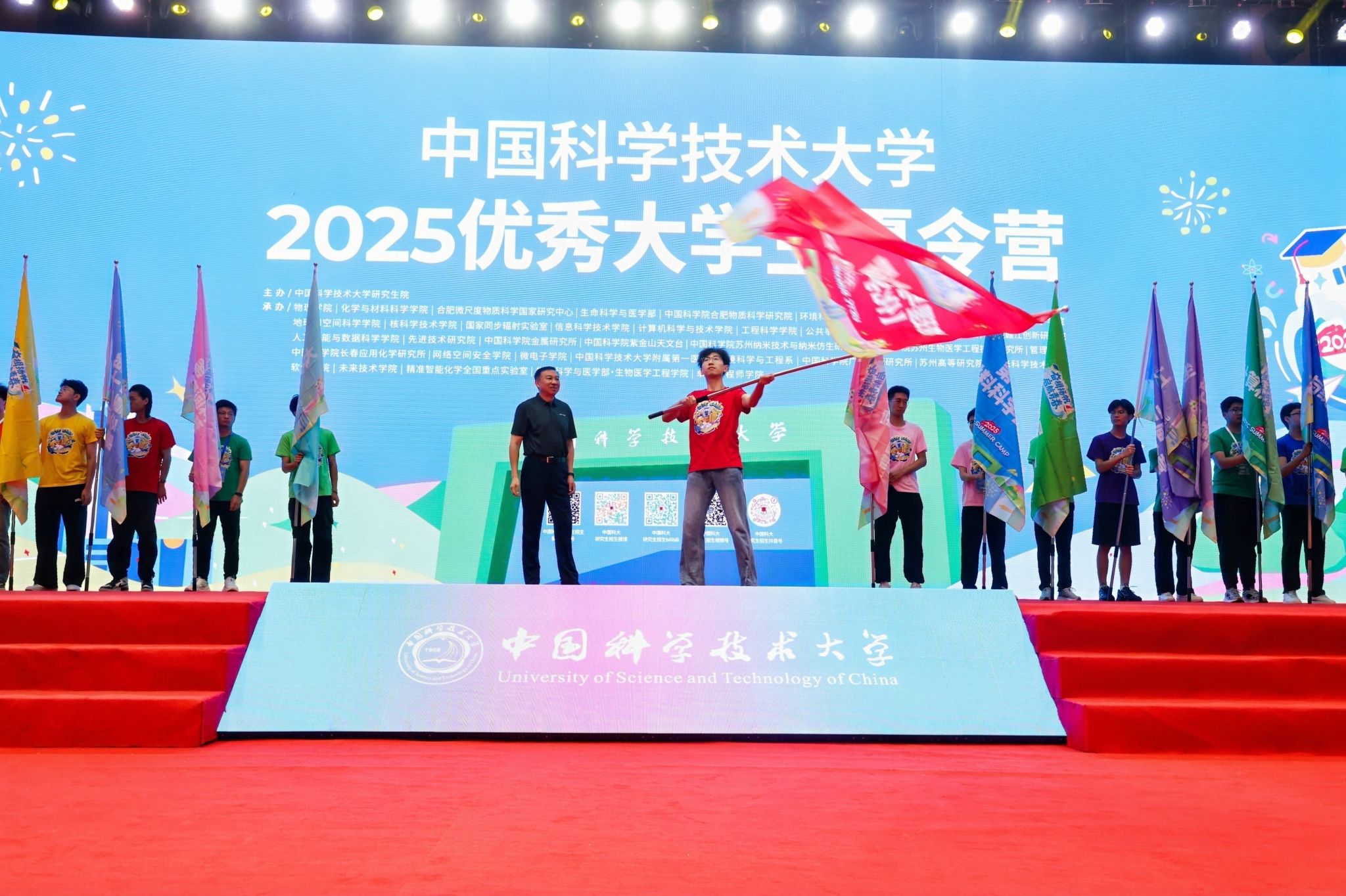 本届中国科大优秀大学生夏令营共开设26个校本部夏令营,8个科教融合夏令营,合计34个夏令营分营,舒歌群为优秀大学生夏令营授旗。