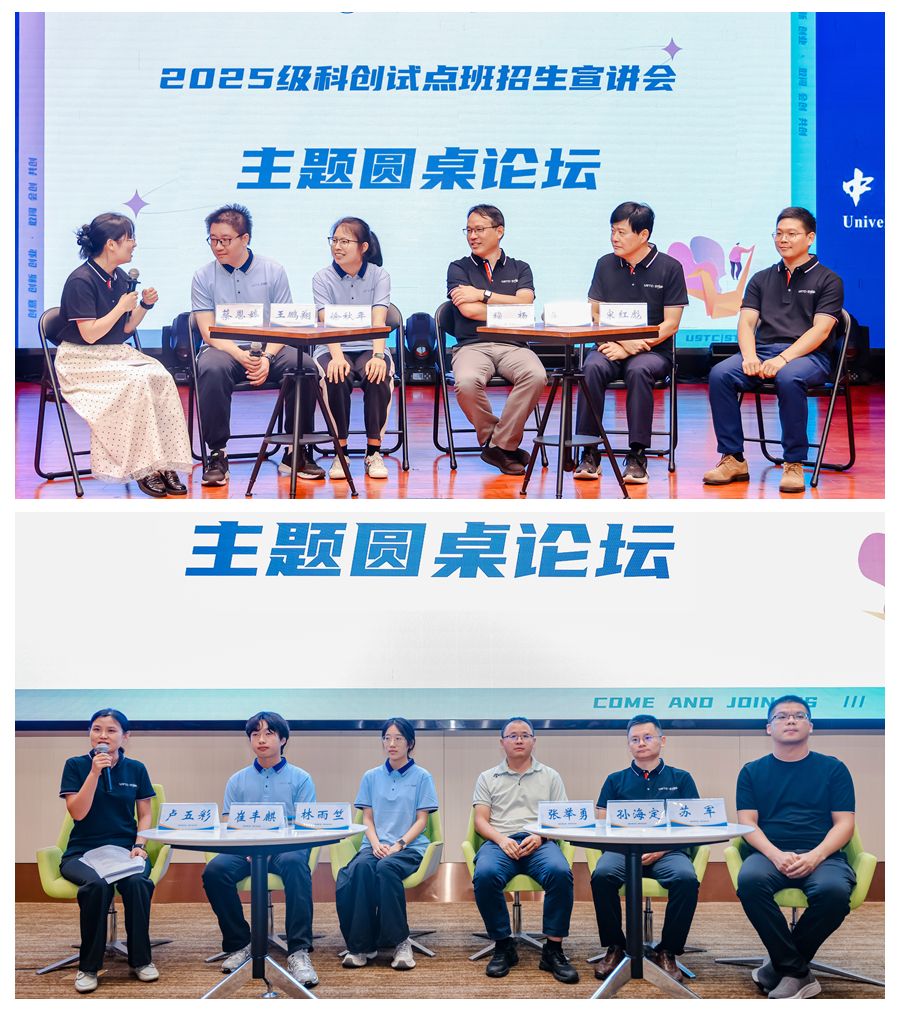在主题圆桌论坛环节,环境科学与工程系执行主任穆杨、先进技术研究院副院长张举勇、工程科学学院精密机械与精密仪器系党总支书记李家文,微电子学院教授孙海定及安徽五十六钡教育科技有限公司董事长宋红彪、合肥爱意资本总经理苏军等我校创新创业导师代表,数学科学学院2024级硕士研究生王鹏翔、国家同步辐射实验室2024级硕士研究生徐秋年、先进技术研究院2024级硕士研究生崔丰麒、林雨竺等科创试点班学员代表,共同参与交流和研讨。