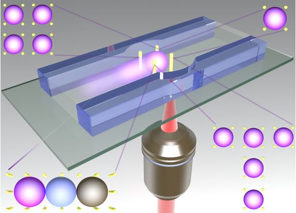 在单细胞分析研究中,捕获目标细胞是实现单细胞分析的第一步。微流控芯片具有传统实验方法所不具备的一些优点,包括超低的试剂消耗、高集成度、高自动化程度、高效率、环境友好、微型化、可携带、低成本以及操控简单等,尤其在操作微量流体方面有着独特的优势,已经被广泛研究并应用于单细胞捕获领域中。其中,基于微流控的捕获阵列方法是实现细胞或者颗粒捕获分离最简单、最常用的方法。然而,目前的微捕获阵列面临着几个难题:1. 由于微捕获结构会增大捕获单元的阻力,使得大部分的颗粒和细胞绕过捕获结构,从而导致极低的捕获效率(低于10%);2. 传统的捕获结构都是预先在微流控芯片中加工出微捕获结构,无法实现针对目标结构尺寸和几何结构的实时可调控性;3. 同时捕获可控的颗粒团簇很难实现。