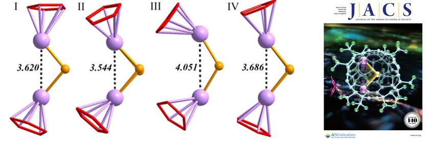 近日,中国科学技术大学杨上峰教授课题组通过对内嵌富勒烯进行化学修饰,成功实现了其分子构型的调控,为调控内嵌富勒烯的结构提供了新的思路。该工作以“Steering the Geometry of Butterfly-Shaped Dimetal Carbide Cluster within a Carbon Cage via Trifluoromethylation of Y2C2@C82(6)”为题,以封面文章的形式发表在最新一期的国际重要化学期刊《美国化学会志》(J. Am. Chem. Soc. 2018, 140, 3496?3499),同时入选当期的JACS亮点文章(Spotlights on Recent JACS Publications)。