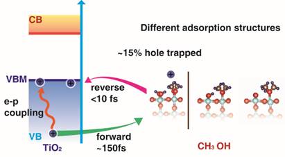 图一. TiO2/CH3OH界面超快空穴转移过程