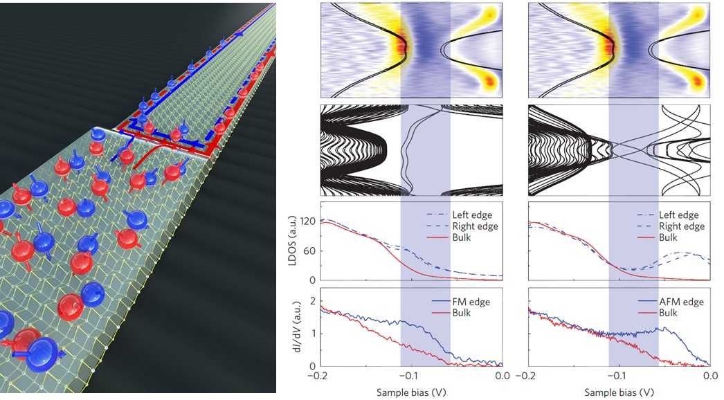 右图: FeSe/SrTiO3拓扑带隙中一维拓扑边界态的理论和实验对比图。