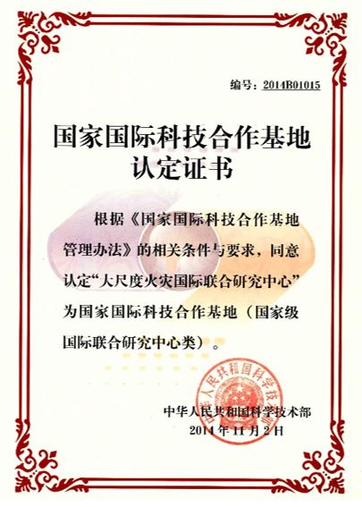 我校首个国家级国际联合研究中心 “大尺度火灾国际联合研究中心”获得认定