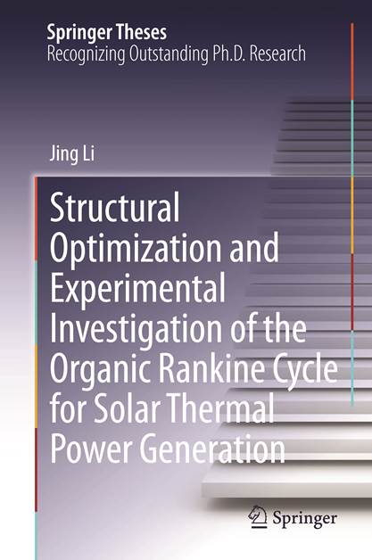 工程科学学院热科学和能源工程系李晶特任副研究员近日在Springer出版了题为“Structural Optimization and Experimental Investigation of the Organic Rankine Cycle for Solar Thermal Power Generation”的英文专著。作为Springer Theses丛书之一,该著作既体现了作者在中国科学院太阳能光热综合利用示范中心攻读博士学位期间的成果,又注重后续工作的补充。内容包括有机朗肯循环(ORC)的技术特性及在太阳能热发电领域的应用前景分析,太阳能ORC热发电不可逆损失研究,系统结构及运行方式优化,变工况条件下ORC性能研究,ORC冷凝温度设计等。在此之前,李晶的博士学位论文入选了2012年度中国科学院优秀博士学位论文,指导老师为季杰教授和裴刚教授。