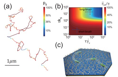 近日,合肥微尺度物质科学国家实验室金帆教授课题组在绿脓杆菌表面运动和适应性方面取得新的重要突破:他们发现在软表面爬行的绿脓杆菌可利用其菌毛在表面上高速弹射,弹射运动对表面的高速剪切可使表面的有效粘度极大的降低,从而减小细菌在表面爬行时的能量耗散。这种独特的适应机制可以极大的帮助细菌在软表面上的分散和传播,这项发现对于理解绿脓杆菌对器官组织(通常为软表面)造成感染的初始机制具有重大意义。该成果近期以“Bacteria slingshot more on soft surfaces”为题发表于国际重要学术期刊Nature communications。