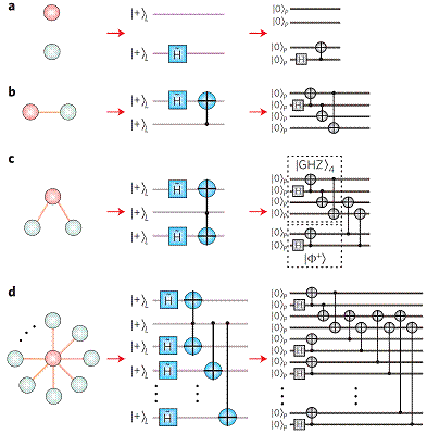 图1制备级联猫态的实验方案,该方案可以扩展到任意比特数