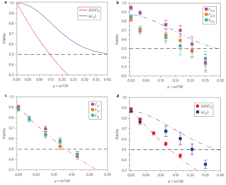 潘建伟小组发展了一套可扩展的编码方式,用两个光子比特编码一个逻辑比特,制备了一个三逻辑比特的级联猫态,通过实验观察级联猫态与普通猫态在不同噪声影响下各自的纠缠演化特性,演示了编码猫态在噪声影响下具有的显著优越性。由于其天然的高容错性,级联猫态可被广泛应用于大尺度的量子网络中,如三人密码协议,量子密钥共享等。同时,这种制备级联猫态的方法可扩展到任意比特数,甚至可能达到宏观级别,实现多年来的研究热点——宏观纠缠。