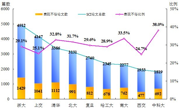9月27日,中国科学技术信息研究所在北京发布了“2012年度中国科技论文统计结果”。据统计结果显示,2012年我校发表SCI论文数量继续增长,“表现不俗论文”比例继续保持C9高校第一,“世界四大名刊”论文数列全国高校第三。同时,近十年论文篇均被引次数继续保持C9高校第一。