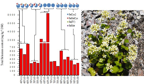 )是人和动物的必需微量元素,是构成谷胱甘肽过氧化物酶、硒蛋白P等多达30种蛋白质的活性中心,中国营养学会推荐日硒摄入量为50-250微克/天。但是,硒的地壳丰度仅为0.05 微克/克,是痕量元素,中国有2/3的人口面临硒摄入量不足的威胁,而全球面临硒的“隐性饥饿”的人口高达15亿。然而与此同时,在美国的加利福尼亚州存在富硒区,甚至在中国的恩施存在世界唯一的硒矿,如何充分利用这些硒资源,一致是科学界和工业界苦苦思索的问题!目前,世界上仅有双钩黄芪(Astragalus bisulcatus)和沙漠王羽(Stanleya pinnata)被识别为硒的超积累植物,均发现于美国加利福尼亚富硒区,而中国尽管贵为“世界硒都”,但仍然缺硒。