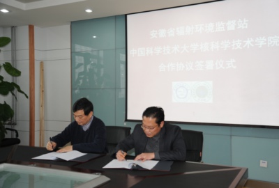 2月27日上午,中国科大核科学技术学院和安徽省辐射环境监督站在安徽省环境保护厅签订了战略合作协议。签字仪式由安徽省环保厅副厅长贺泽群主持,中国科大副校长周先意,安徽省环保厅厅长缪学刚、省辐射环境监督站站长张仰峰,中国科大核学院副院长盛六四、党总支副书记丁翠平等参加签字仪式。