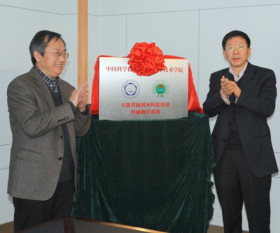 中国科大核科学技术学院在安徽省辐射环境监督站建立了科研教学基地,中国科大周先意副校长与安徽省环保厅缪学刚厅长共同为该基地揭牌。