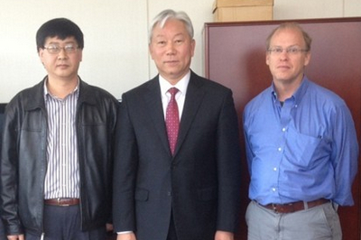 陆亚林教授(左一)与Mooyoung Jung教授(中)、Rodney S Ruoff教授(右一)合影