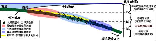 该研究还系统地分析了这些大地震能量辐射与地震破裂所引发的断层滑移量及早期余震空间分布的关系。研究结果发现俯冲板块的浅部(深度约在15公里以上)是大地震所引发的海啸的主要区域,通常伴随着很大的断层滑移,有的大地震甚至可以产生几十米的滑移量。该深度区域在地震破裂过程中主要释放较低频率(如小于0.1赫兹)的能量,主要是由于地震引发的浅部断层表面的破裂尺度较大以及破裂的速度相对较低造成的。由于主震释放掉了俯冲板块浅部累积的大部分应力和应变,所以该深度区域发生的早期余震数目也相对较少。俯冲板块的中等深度区域(约在15-35公里深度范围)是俯冲带主要的孕震区域,处于非稳定的状态,这一区域在大地震破裂过程中一般也会出现较大的断层滑移(如几米到十几米),通常在主震过程中释放大量的中等和较高频率(如0.1到0.4赫兹)的能量,余震也主要集中在该区域。俯冲板块的较深部位置(约在35-45公里深度范围)在地震破裂中产生的滑移量一般较小(几米或一米以内),该区域是地震破裂中高频(如高于0.4赫兹)能量释放的主要区域,主要可能是因为深部断层面上存在数量众多但尺度较小的不稳定区域,这些不稳定小区域在地震中被诱发发生破裂时释放出大量的高频能量。姚华建教授及其合作者的研究结果对于认识俯冲带大地震的破裂规律具有重要的意义,对于用理论和数值计算等方法研究震源破裂过程有着重要的指导意义。
