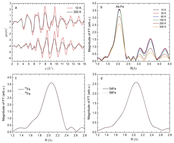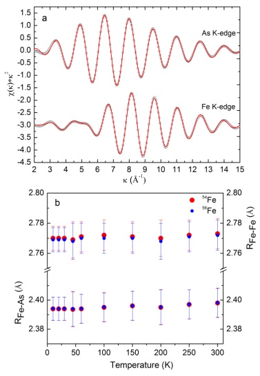 自2008年铁基超导材料被发现以来,一直是凝聚态物理的重要研究热点之一。然而对铁基超导机制的理解存在着广泛的争议。继我校陈仙辉教授研究组和吴自玉研究组利用Tc和磁测量首次发现铁基超导材料的同位素效应之后【Nature 459, 64-67 (2009)】,他们又利用新发展的同位素微观效应的温度依赖EXAFS探测方法,研究了铁基超导材料的同位素效应的微观机制。最新的研究指出,对于