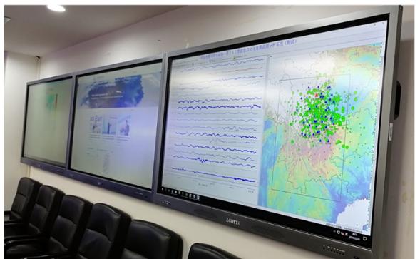 图2:中国地震局演示“智能地动”地震监测系统(左)图3:中国地震局总部实时运行该监测系统(右)