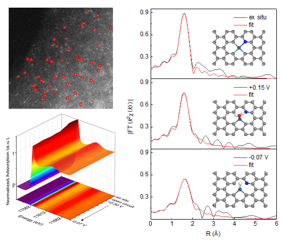 在能源催化领域中,精确探测催化剂在服役状态下原子尺度结构的动态变化过程对于催化剂的理性设计具有重要意义。近几十年,科学家对纳米尺度材料的深入理解和可控构筑极大地促进了催化科学的基础和应用研究的发展。其中,单原子催化剂由于其高的原子利用效率、优异的反应活性和选择性,成为了近年来能源催化领域的明星材料。单原子催化剂的活性和选择性高度取决于其金属原子的局域原子和电子结构,及其与载体间的相互作用。然而,单原子催化剂在实际反应状态下,受到温度、电场、光照等外界环境激发,会发生结构演变的响应,因此,原位实时在线表征这种特殊的结构响应行为对于理解单原子催化的本质并发现新的催化现象具有重要的启发意义。同步辐射X射线吸收谱是描绘催化中心局域空间和电子结构最强有力的工具之一,能在实际催化环境中实现固、液、气态样品的原位探测。因此,高亮度和高灵敏的先进同步辐射光源为研究这一亟待突破的问题提供了契机。