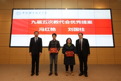 1月5日上午,第十届教职工代表大会第一次会议举行颁奖仪式,表彰2019年度杰出研究校长奖、第十二届平凡基金-教育奖和教代会优秀提案奖的获得者。校党委书记舒歌群、校长包信和为获奖者颁奖。