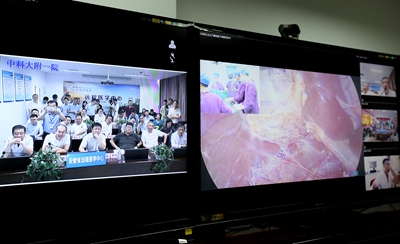 8月15日上午,在中国科大附一院的远程医疗会诊中心,中国科大附一院专家为医院医共体单位——阜阳市颍上县人民医院开展的一台腹腔镜手术进行了远程手术指导。本例手术是安徽省首例基于5G独立组网模式,端到端的多方接入移动远程手术指导,标志着安徽省5G+医疗创新进入实际应用阶段。