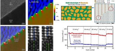 中国科学技术大学马骋教授课题组和清华大学南策文院士团队在锂电池固态电解质的研究上取得重要进展。研究者使用球差校正透射电镜对固态电解质和电极材料的界面进行观测,发现富锂层状结构的正极和钙钛矿结构的固态电解质之间可以形成外延界面。利用这一现象,研究者制备了倍率性能可与传统浆料涂覆正极相比的复合正极,为克服固态电池中电极-电解质接触差这一瓶颈提供了新思路。相关研究成果以”Atomically Intimate Contact between Solid Electrolytes and Electrodes for Li Batteries” 为题发表在Cell Press旗下的材料学旗舰期刊《Matter》上(DOI: https://doi.org/10.1016/j.matt.2019.05.004)。论文的第一作者是我校硕士研究生李富振同学。