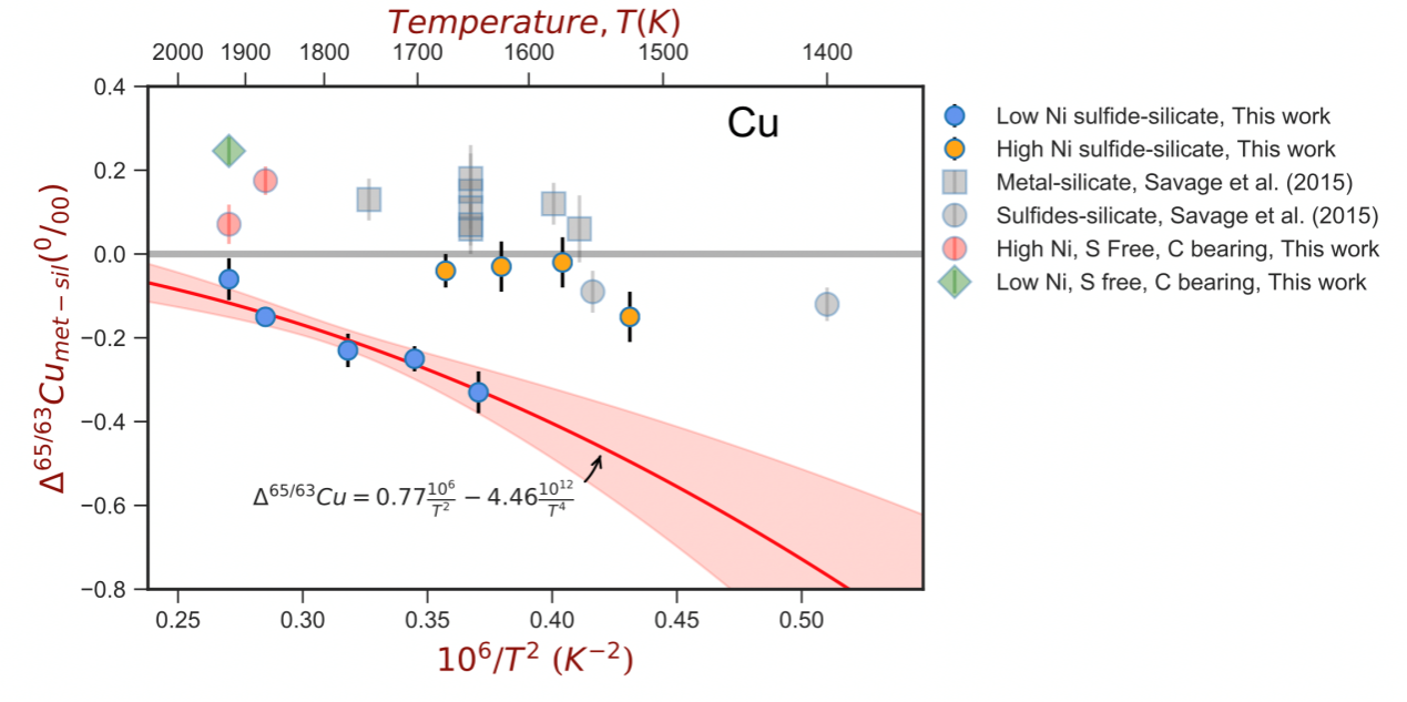 铜(Cu)和锌(Zn)既是挥发性元素(可以制约碰撞过程中的挥发效应),又是亲铁-亲硫元素(可以制约核幔分异过程),因此可以用来探讨月核分异对于月球化学组成的影响。经过多年努力,我校地球和空间科学学院黄方教授团队建立了高精度的Cu-Zn同位素分析方法,在此基础上和英国牛津大学的Jon Wade博士以及爱尔兰University College Cork的Kate Kiseeva教授合作,通过高温高压实验岩石学,精确地测定了硅酸盐熔体和金属熔体之间的Cu和Zn同位素平衡分馏系数,制约了月核的成分和形成过程。