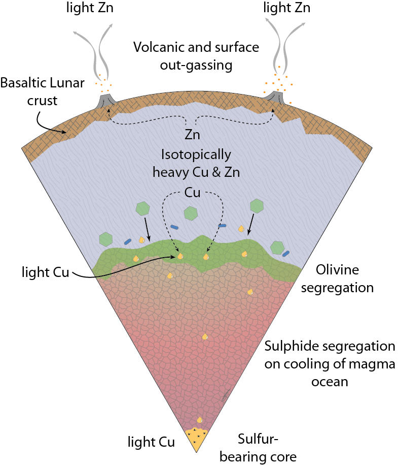 大碰撞假说认为,月球形成于一个火星大小的行星和原始地球在45亿年前发生的大碰撞。碰撞后的物质飞溅到太空,在月球轨道聚集增生,形成炙热熔融的月球岩浆洋,之后从中分异出月核、月幔和月壳的结构。大碰撞事件深刻地改变了地月系统的行星环境和化学组成,是地月系统经历的最重要行星事件。一般认为,大碰撞时的挥发作用会改变月球的元素和同位素组成,但是对于月球圈层分异、特别是月核形成过程还知之甚少,主要原因是缺乏对元素和同位素地球化学行为的了解。
