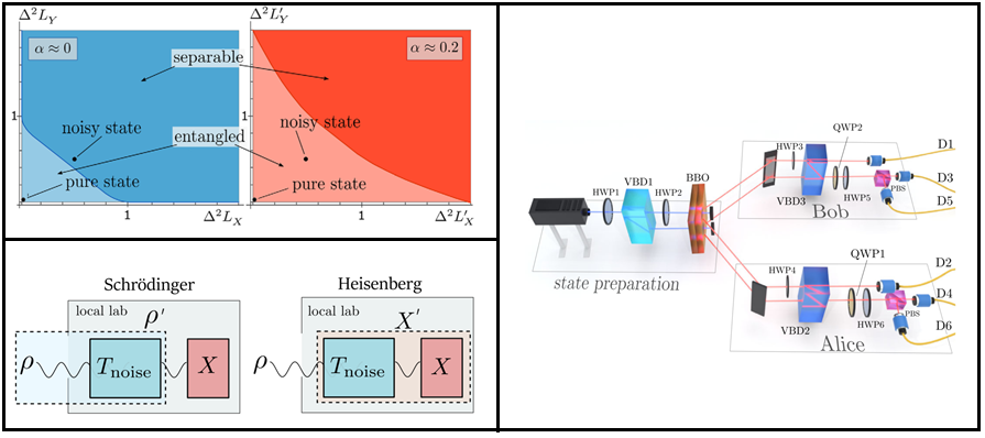 量子纠缠是实现量子加密、量子计算、量子网络等各种量子信息技术的关键资源,如何有效判定一个态是否为纠缠态是量子信息领域的重要问题。常见的方法是纠缠目击者,其操作简单。纠缠态的纯度很高的情况下,纠缠目击者可以判定它是纠缠态,但是在噪声较大时,通常的纠缠目击者会失效,即会把纠缠态误判为没有纠缠。另一方面,早在2003年,研究者们就注意到每个粒子遵循局域的海森堡不确定关系,如果多粒子系统的测量结果违背了局域不确定关系,则意味着系统中存在纠缠,可以用来做纠缠目击者。