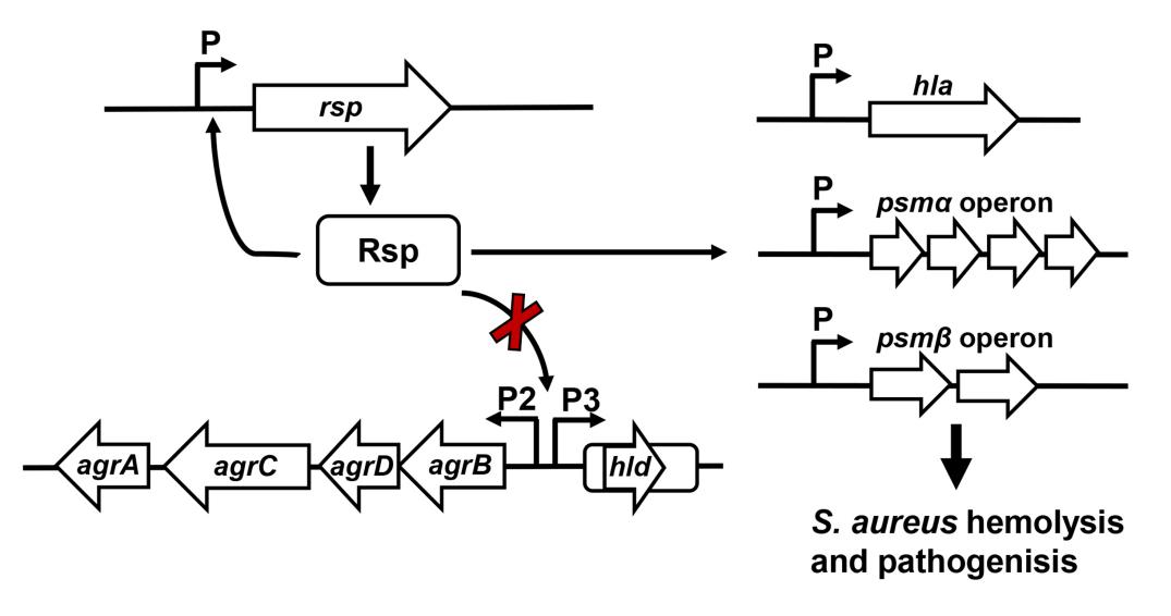 中国科学技术大学第一附属医院和生医部孙宝林教授研究组在金黄色葡萄球菌感染机制领域取得重要进展,相关研究结果以“Rsp promotes the transcription of virulence factors in an agr-independent manner in Staphylococcus aureus”为题发表在杂志《Emerging Microbes & Infections》。该研究发现AraC/XylS家族蛋白Rsp可以直接与自身启动子序列结合从而实现自我调控;Rsp能够以agr 非依赖的方式正向调控金黄色葡萄球菌毒力基因的表达;小鼠体内实验进一步证明Rsp能够促进金黄色葡萄球菌的致病性。本研究揭示了金黄色葡萄球菌调控蛋白Rsp介导的agr 非依赖毒力调控机制,拓展了我们对金黄色葡萄球菌毒力因子调控网络的认识,为治疗金黄色葡萄球菌感染的药物开发提供了新的分子靶点。