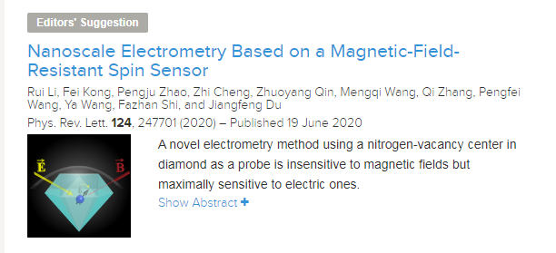 中国科学技术大学中国科学院微观磁共振重点实验室杜江峰、石发展、王亚等人在金刚石单自旋量子精密测量研究方向取得重要进展,提出并通过实验实现了一种以金刚石氮-空位(NV)色心单自旋为量子传感器(以下简称“金刚石量子传感器”)的电探测方法,并首次通过磁抑制的NV色心实现了金刚石近表面电噪声信息的提取,为金刚石量子传感器在电探测方向的应用提供新的途径。该研究成果以“编辑推荐”形式发表在近期的《物理评论快报》上 [Nanoscale Electrometry Based on a Magnetic-Field-Resistant Spin Sensor, Phys. Rev. Lett. 124, 247701 (2020)]。