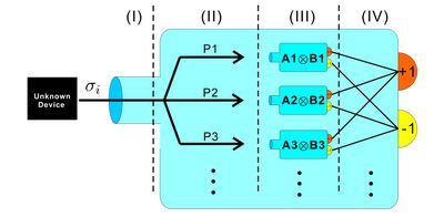最优量子纠缠态检验原理图示(以两比特为例)。