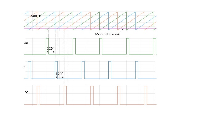 图3. 基于Buck模块级联的三电平开关电源架构。 图4. 基于移相倍频的PWM控制波形。