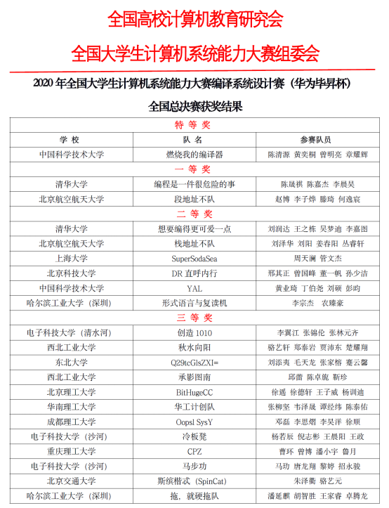 中国科大荣获首届全国大学生计算机系统能力大赛编译系统设计赛 特等奖