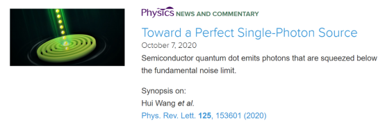 中国科学技术大学潘建伟、陆朝阳等与美国普林斯顿大学Marlan Scully、德国维尔兹堡大学Sven Hofling等合作,在同时具备高纯度、高不可分辨、高效率的单光子源器件上观察到强度压缩,为基于单光子源的量子精密测量奠定了基础。论文以“编辑推荐”形式近日发表于《物理评论快报》。美国物理学会Physics网站以“面向完美的单光子源”(Toward a Perfect Single-Photon Source)为题专门对该工作做了高亮报道。