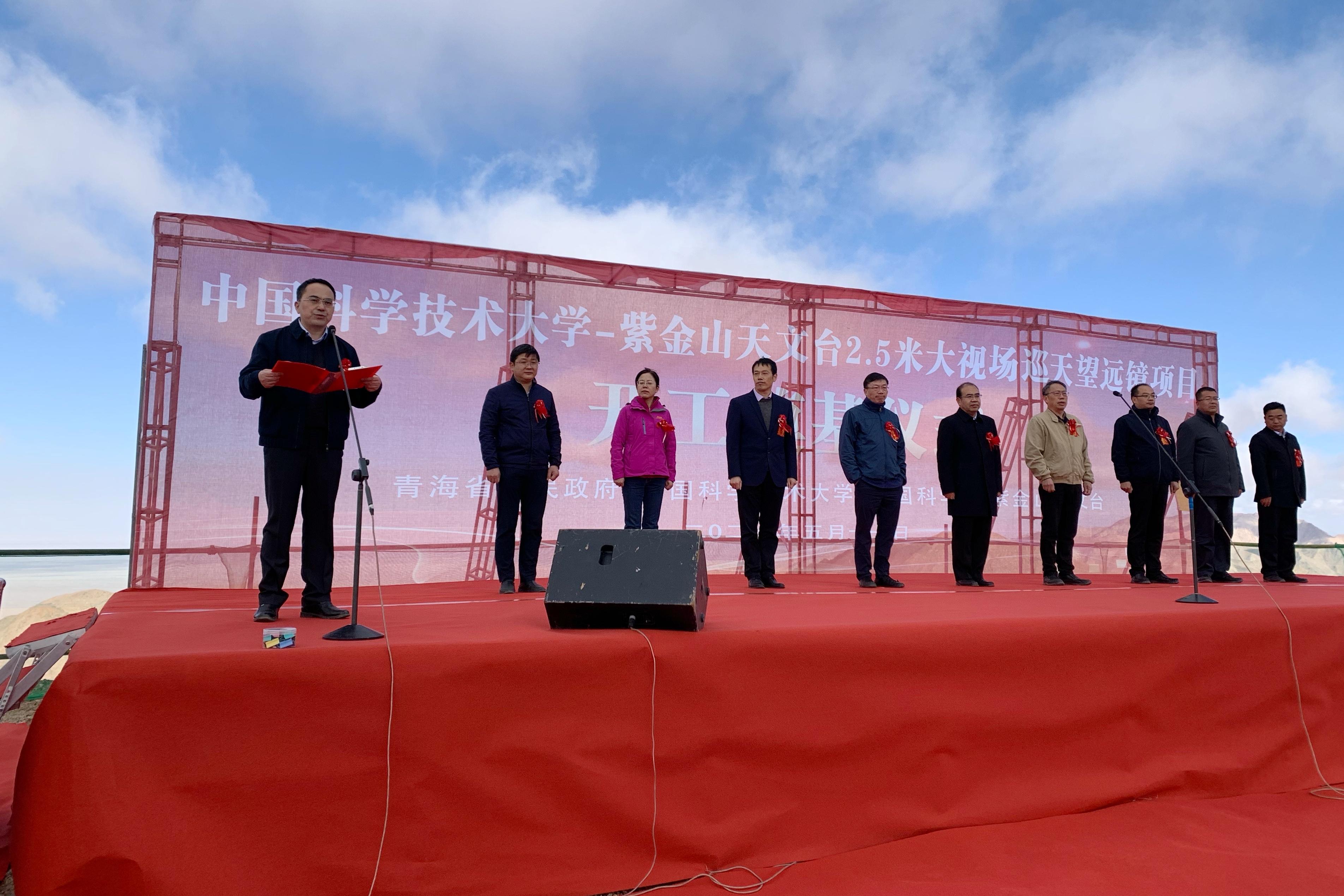 5月11日上午,我校“双一流”重点建设项目“中国科学技术大学—紫金山天文台2.5米大视场巡天望远镜”基建工程在青海冷湖天文观测基地正式开工。青海省副省长杨志文,中科院国家天文台台长常进院士,中科院云南天文台韩占文院士,中国科大党委常委、副校长罗喜胜,青海省政府副秘书长王述友、科技厅副厅长苏海红,海西州政府副州长鲁旦主,中科院紫金山天文台副台长吴雪峰,茫崖市政府市长刘为民等出席开工奠基仪式。青海省、海西州、茫崖市、冷湖镇相关负责人,国家天文台、紫金山天文台、云南天文台专家,中国科大“双一流”建设监理委员会主任张淑林及学校相关部门负责人见证了望远镜的开工建设。开工奠基仪式由冷湖工业园党委常务副书记、管委会常务副主任田才让主持。