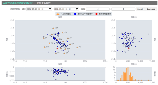 仅在27日一天,由4G智能地震仪和地震实时分析平台组成的地震实时智能监测系统就监测到371个地震,数量比同期全国固定台网人工处理结果多7%。截止5月28日17:00,系统已自动检测并定位了830个地震,其中地震最小震级为-2级,最大震级为4.1级。4G智能地震仪记录的数据和地震实时分析平台的处理结果实时向云南省地震局等单位共享。