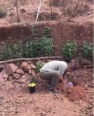 图2 工作人员在野外准备埋设4G智能地震仪
