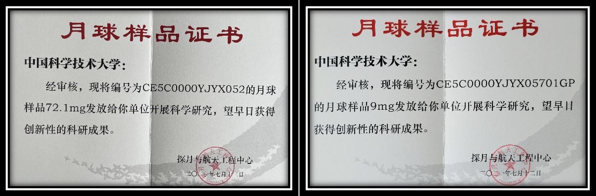 7月12日,国家航天局、中国科学院在京联合举行第一批月球科研样品发放仪式,向13家科研机构发放了31份样品,共17476.4mg,标志着月球样品的科学研究正式启动。其中,我校杜江峰院士、秦礼萍教授作为使用责任人获批第一批月球样品,共计81.1毫克。首次获批月球样品的17位使用责任人中,5名是中国科大校友。