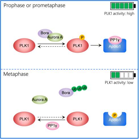 7月13日,中国科大细胞动力学教育部重点实验室发掘新着丝粒蛋白Apolo1并揭示细胞更新质量控制机制,在Cell Reports杂志在线发表“Feedback control of PLK1 by Apolo1 ensures accurate chromosome segregation”。针对PLK1激酶在有丝分裂前中期的时空动态特征及其关联的生物学意义,中国科学技术大学姚雪彪/刘行/刘丹合作团队采用真核细胞有丝分裂调控网络基因共进化策略与细胞器时空蛋白质组学方法(Wanget al., 2004; Liuet al., 2020),发现并命名了一个新颖的着丝粒功能蛋白,Apolo1(Adaptor of Polo1)。Apolo1在后生代细胞进化中呈现,并在动物中显示出高保守性。这项工作系统地解析了Apolo1的生物化学功能,揭示Apolo1如何通过动态连接着丝粒蛋白激酶PLK1与磷酸酶PP1γ的互作(图一),为详尽的构-效研究奠定基础。