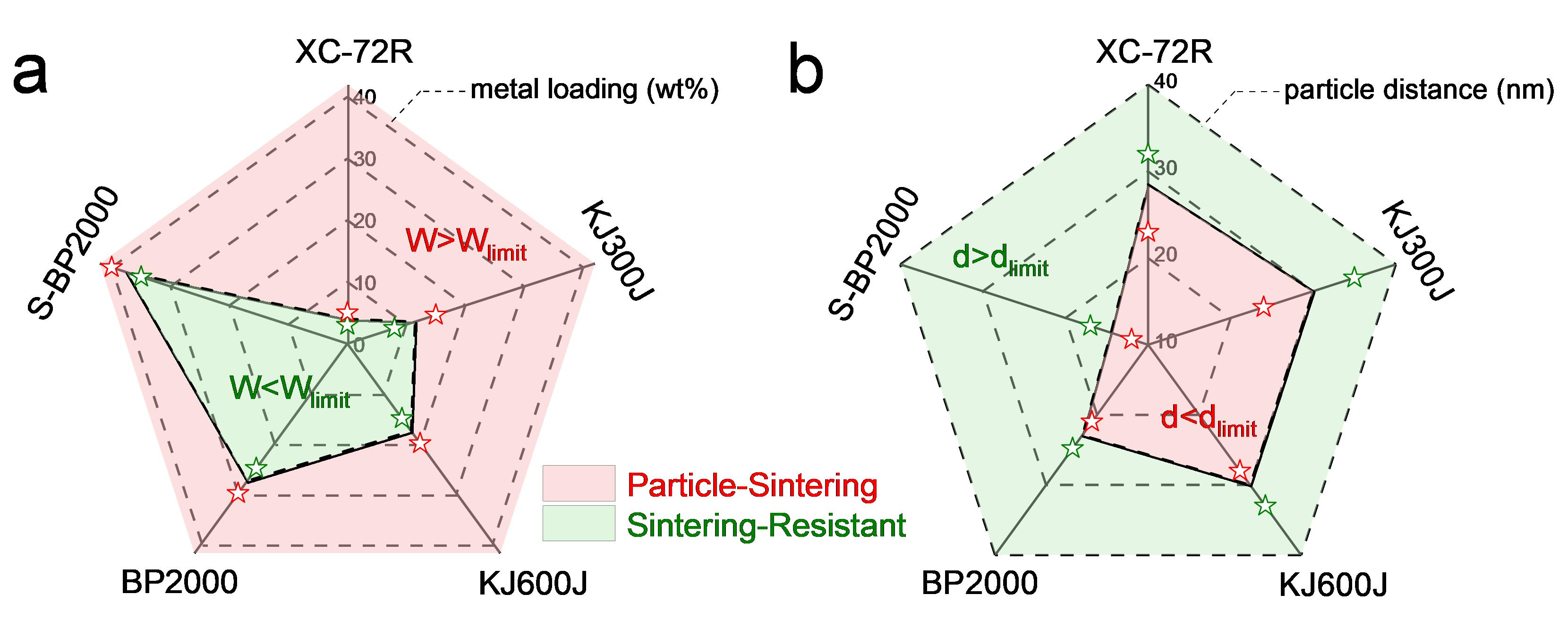 该项工作提供了一种对于给定催化剂载体预测最高担载量的方法,并提供了一种通过调节金属和载体相互作用以及载体比表面积来系统地提高抗烧结催化剂最大担载量的有效策略。