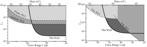 图2 新奇相互作用实验界限(a)提升至少4个数量级。(b)提升至少2个数量级。