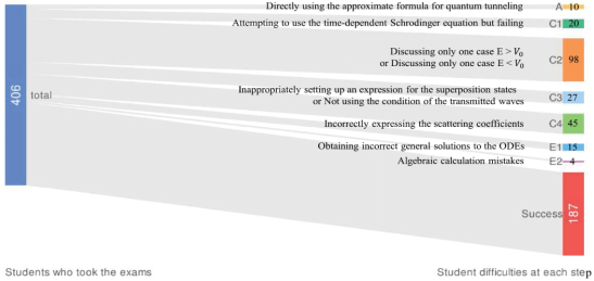 物理教育研究领域有两大研究学派:一派是以诺贝尔物理奖得主G.Parisi为代表,重视数据统计,从复杂性科学的视角分析,另一派是以诺贝尔物理奖得主C.Wieman为代表,重视实证调查,从教育学的视角分析。中国科大的研究团队综合运用了上述两种研究方法,通过对物理学院6年时间周期、406名本科生的样本数据的统计分析,研究了学生对于量子物理中束缚态和散射态的思维流程图,成功构建了Activation-Construction-Execution-Reflection的理论框架和基于Overgeneralization的思维机制模型。