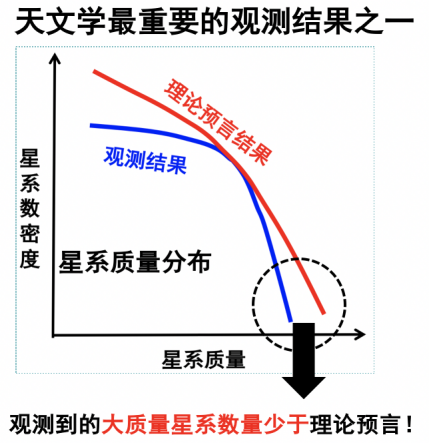 星系是宇宙的基本单元,如同人类的细胞之于人类本身。星系形成和演化过程是理解宇宙演化历史和限制宇宙学参数的关键之一。基于冷暗物质的理论预言的星系质量分布与观测相比,在小质量和大质量端均有超出。许多数值模拟的结果显示小质量端需要超新星的反馈而大质量端则需要有巨型黑洞驱动的活动星系核反馈来调节理论与观测之间的差异。