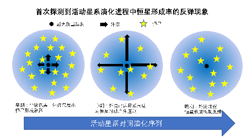 图2:首次探测到活动星系演化进程中恒星形成率的反弹现象。